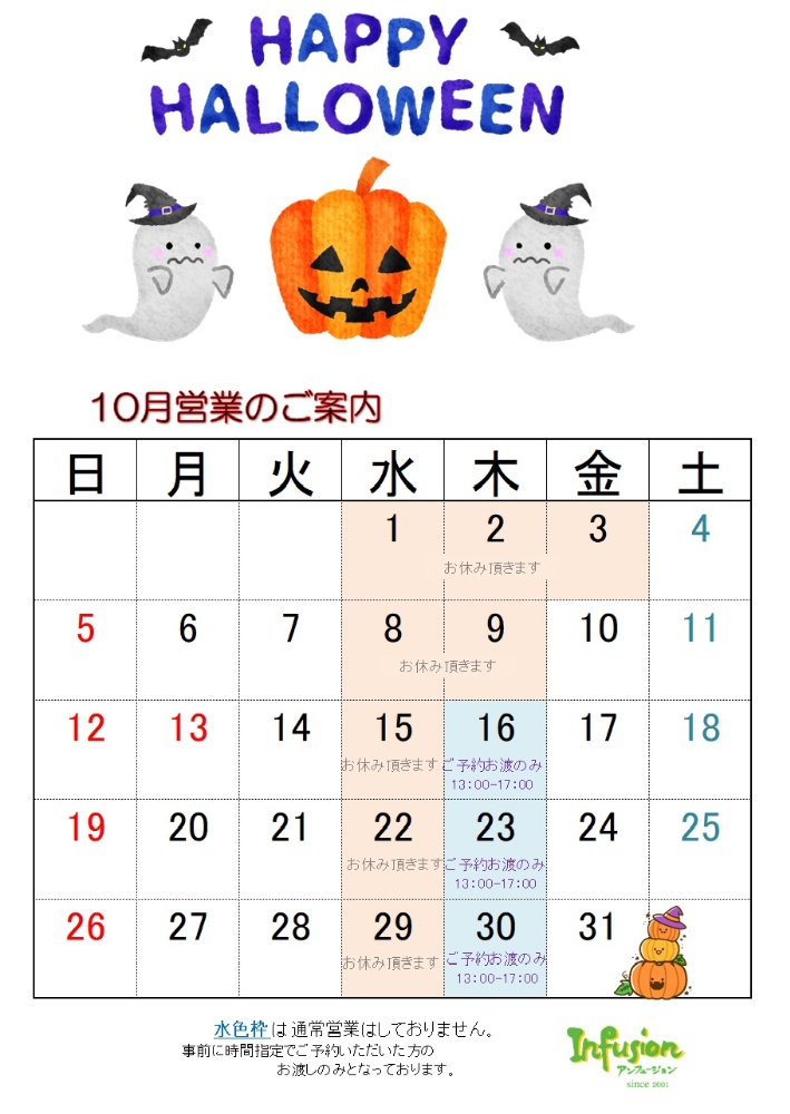 9:30~18:30 完売になり次第 CLOSEの場合有 定休日:水曜日・木曜日 ※祝日・イベント日は営業のため変更の場合有 ※木曜日はご予約の方のお渡しは 行っておりますがご予約受付はできない場合があります。 |