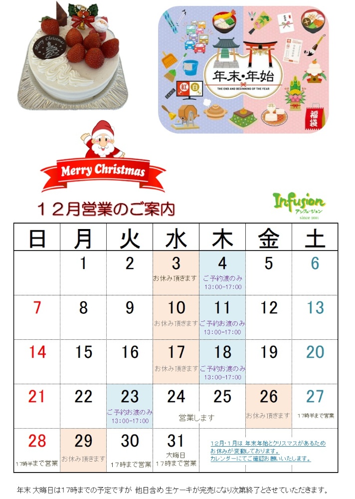 尚、通年デコレーションは12/22から12/27まで ご用意ができませんので ご了承くださいm(__)m
